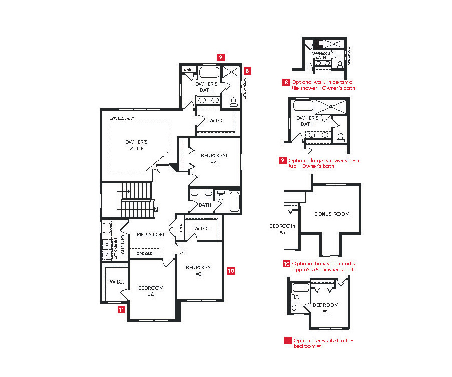- Transitional two story design with 4 bedrooms and optional bonus room