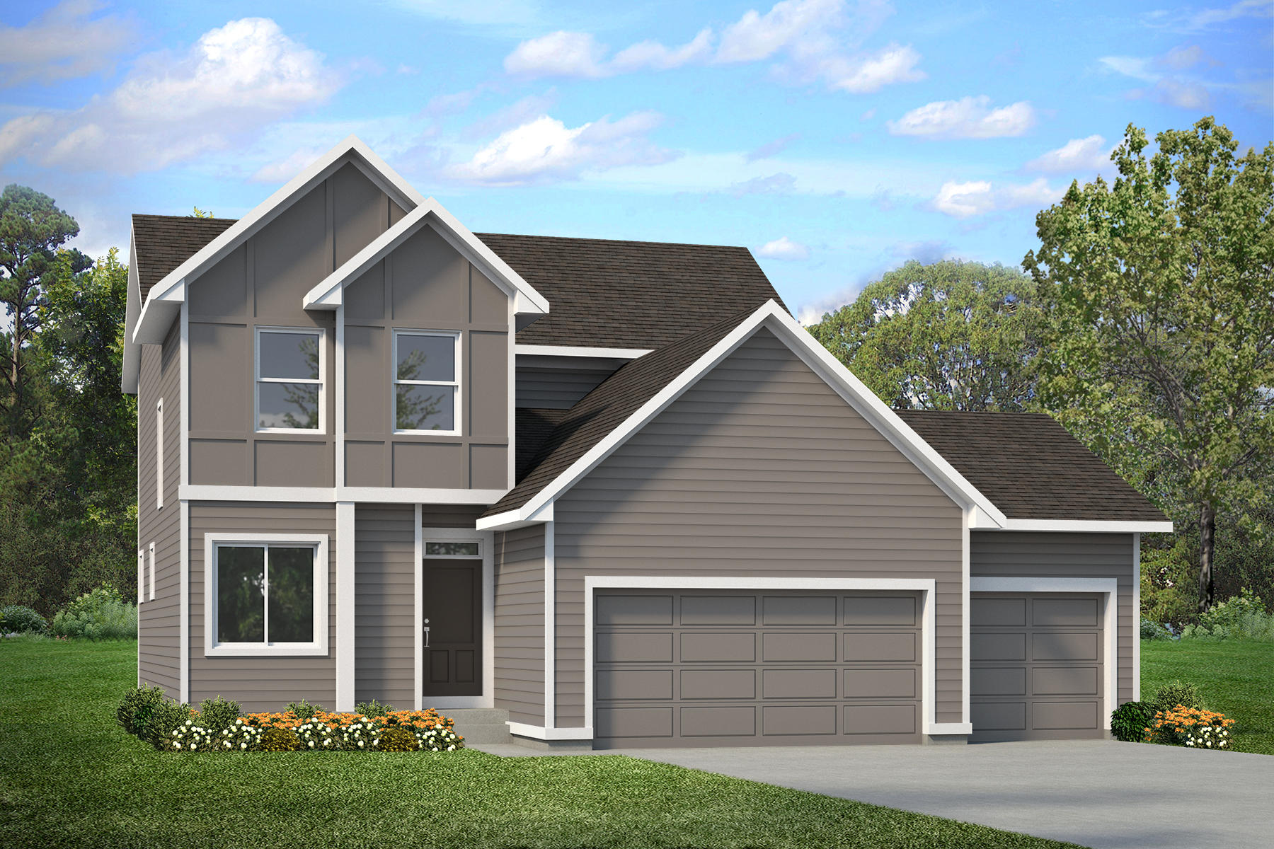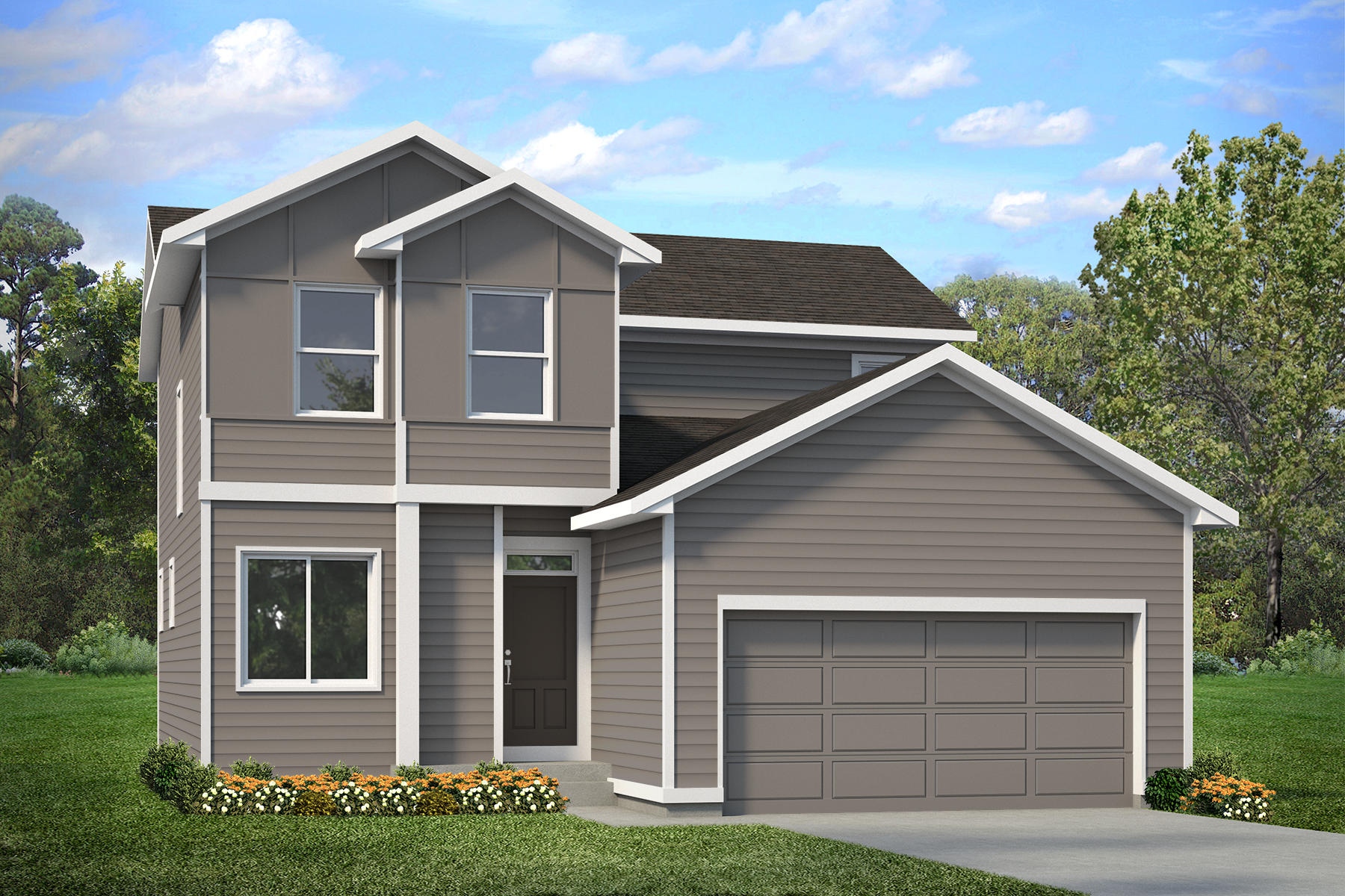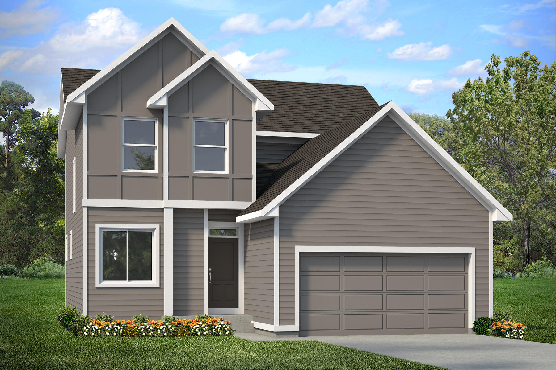 - LP SmartSide® prefinished panels and siding on front façade