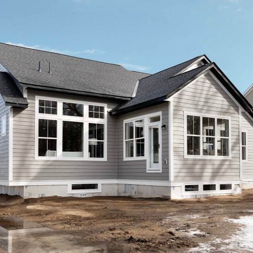 - Classic combination of LP SmartSide® prefinished shake and lap siding with 4-sided architectural detail, including wrapped windows and trim boards