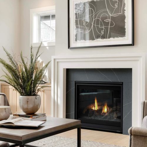 - Vaulted gathering room with fireplace and optional built-in cabinetry