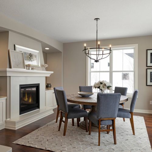 - Main level features 2-sided fireplace with optional built-ins between gathering and dining rooms