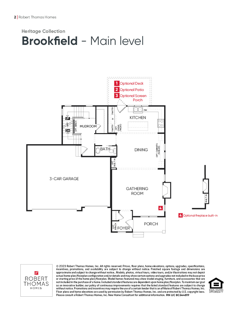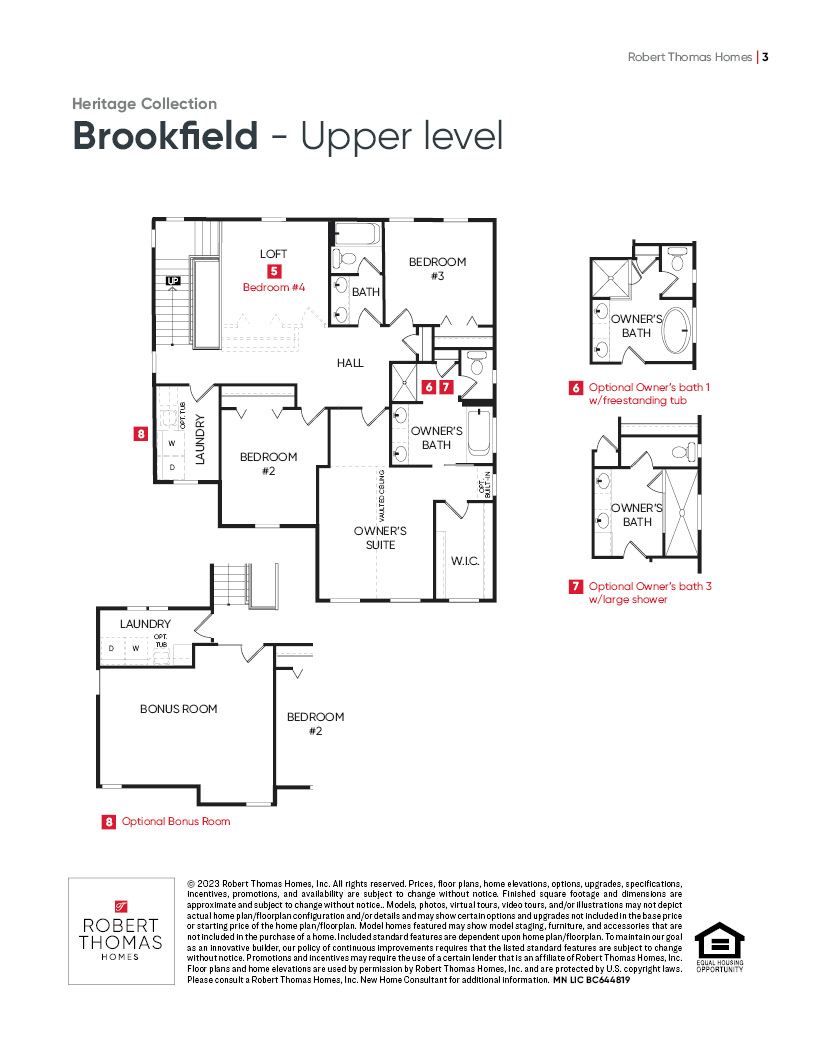 - Optional upper level bonus room, and/or fourth bedroom