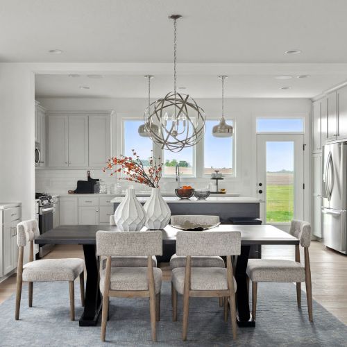 - Open dining room with optional cabinets, shelves, and built-ins