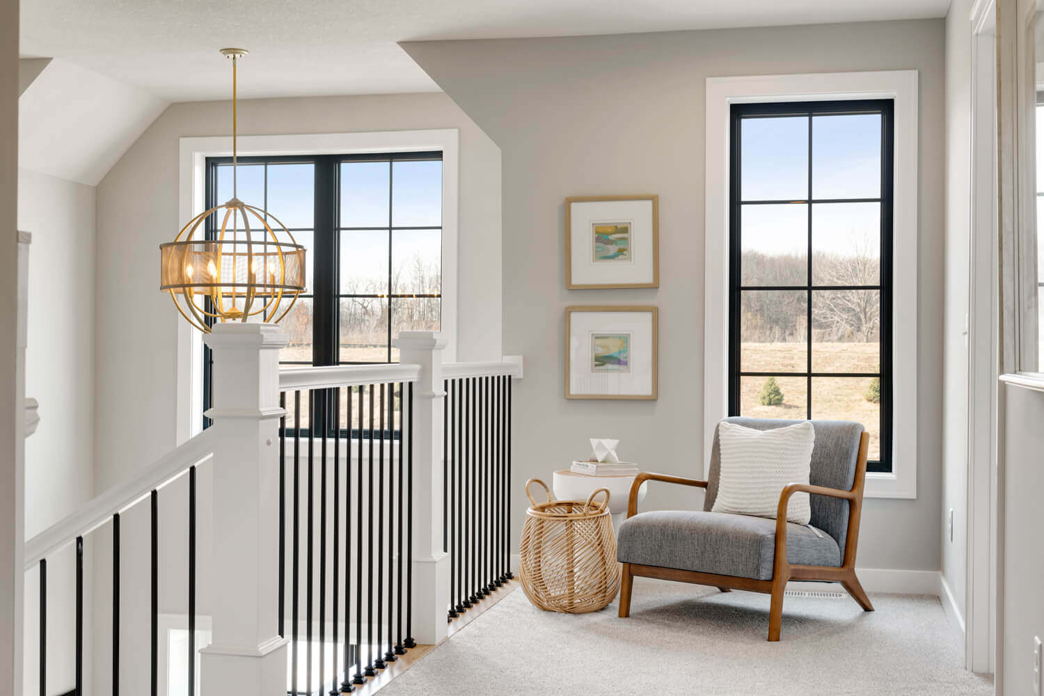 - Grand open staircase to upper level