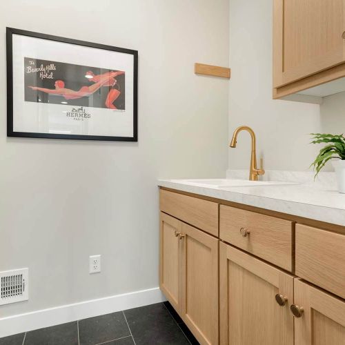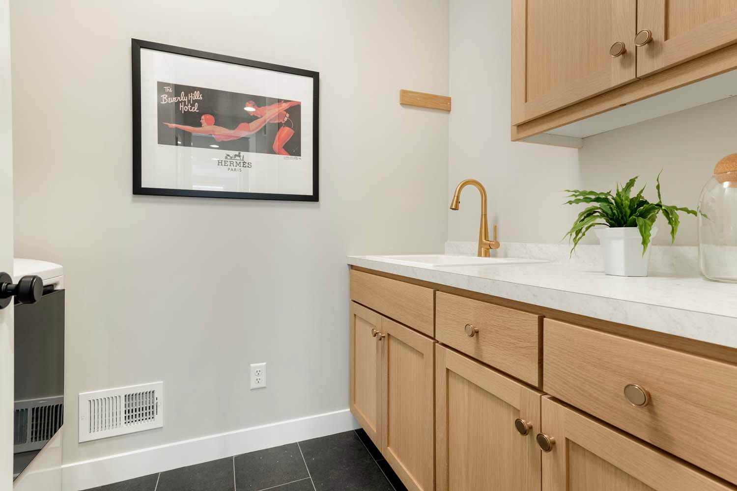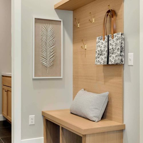 - Convenient main level laundry and mudroom with large walk-in closet and optional bench
