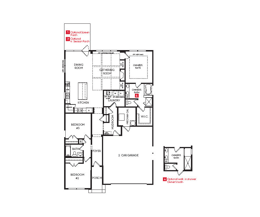 - Convenient main level laundry and mudroom with optional built in bench