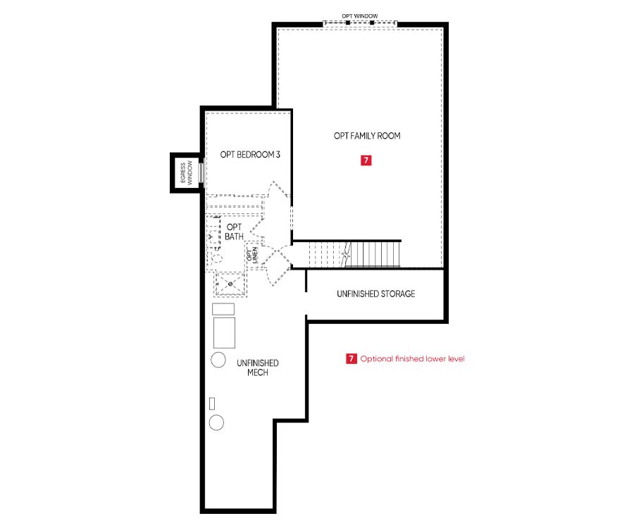 - Optional lower level with family room, bedroom #3 and bath (adds 1,053 sq.ft.)