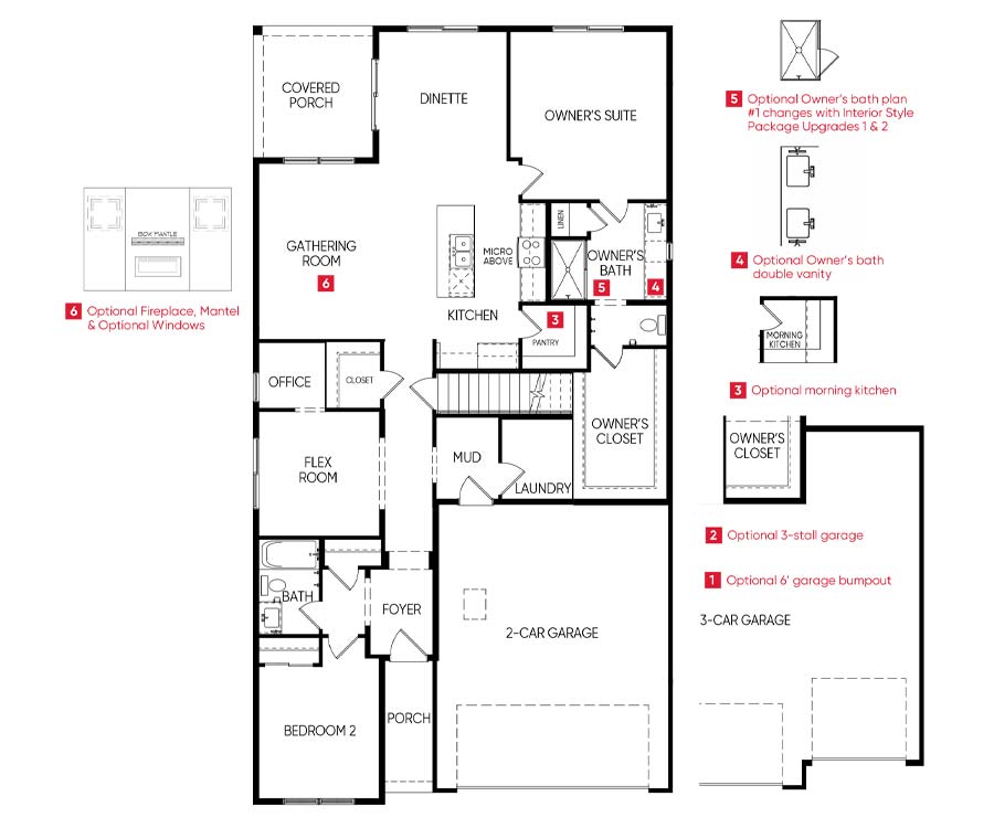 - Optional 3-car garage and additional 6’ bump-out