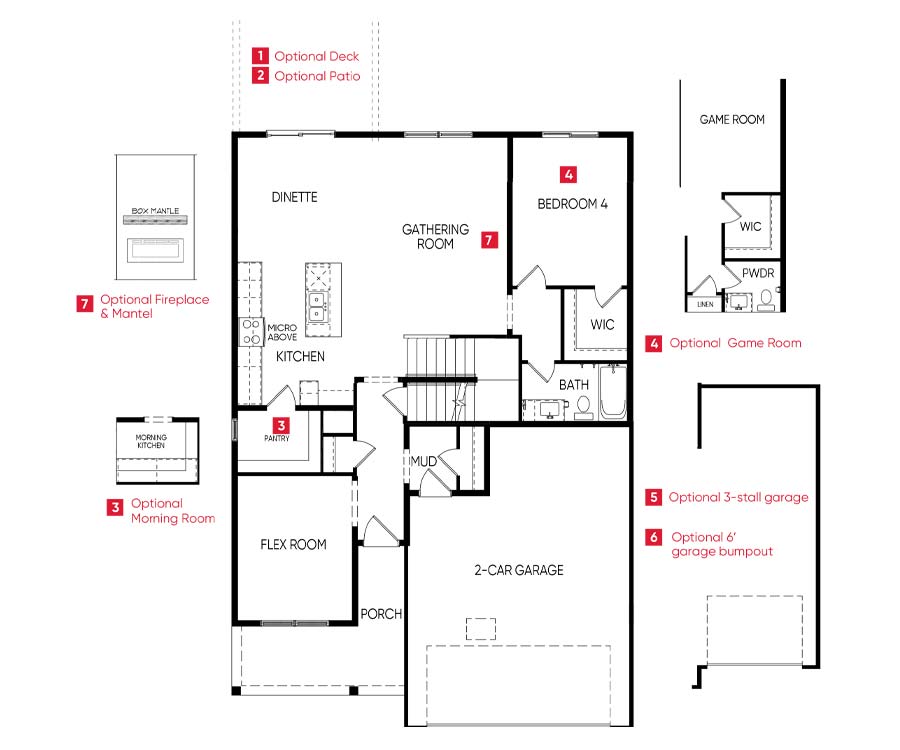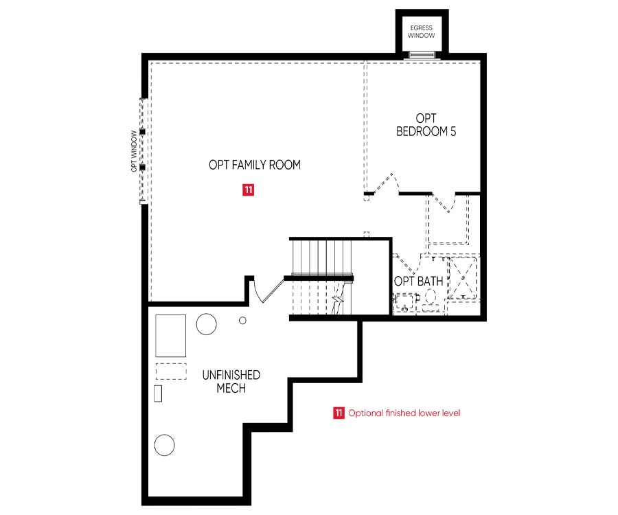 - Optional lower level with family room, bedroom #5 and bath (adds 869 sq.ft.)