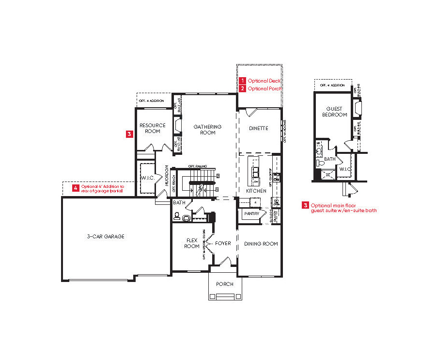 - Gathering room with expansive windows, fireplace and optional built-in cabinetry