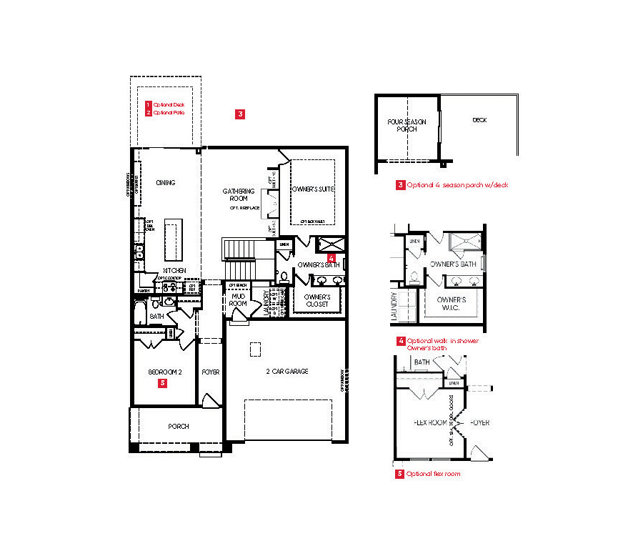 - Open dining with sliding patio door to optional four-season porch, deck or patio