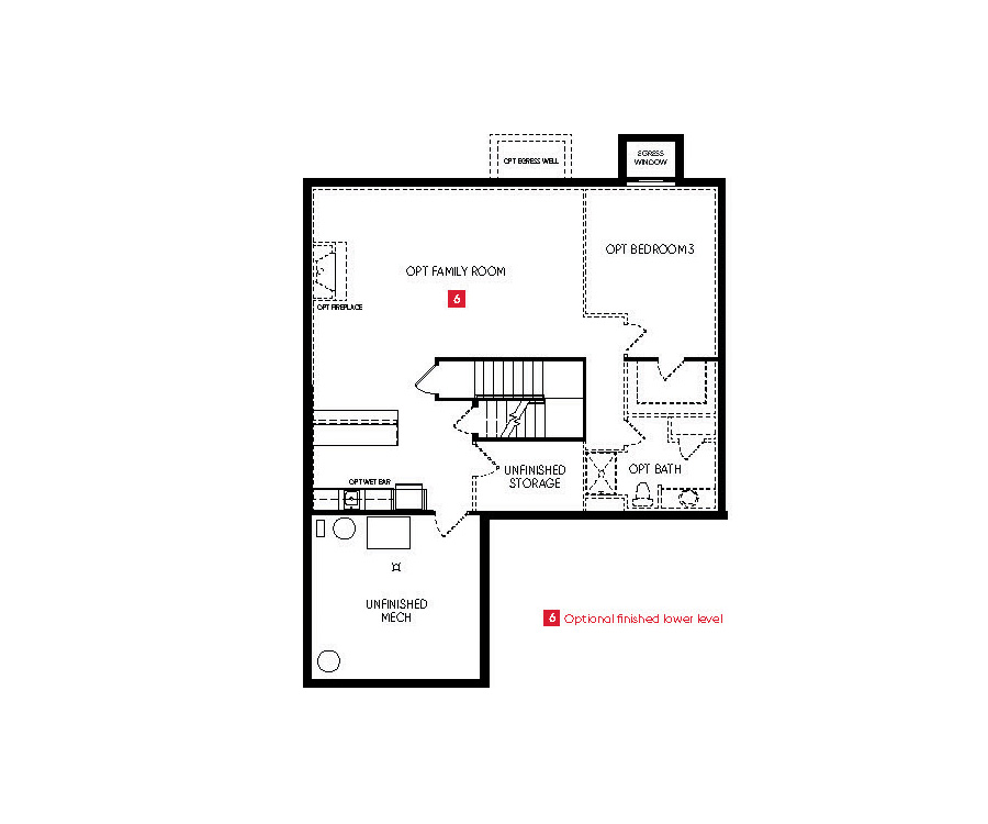 - Optional finished lower level with family room, bedroom, bathroom, and storage space