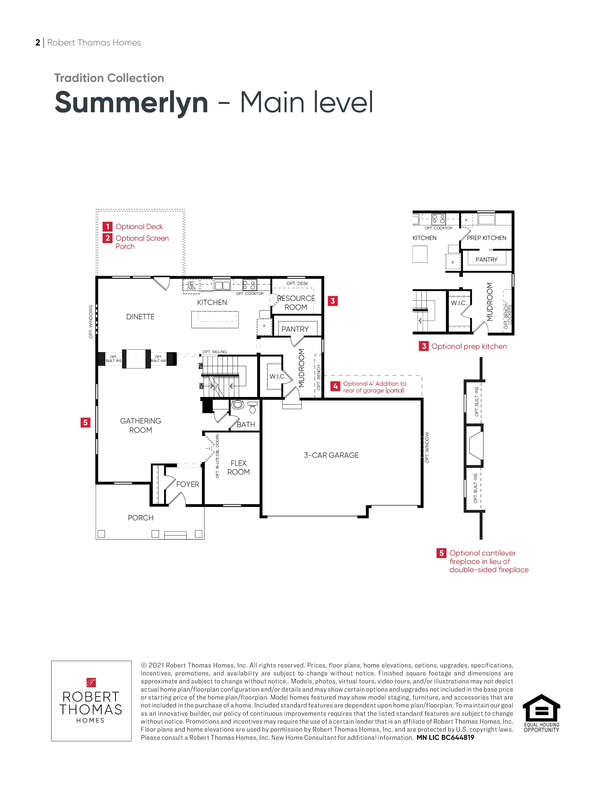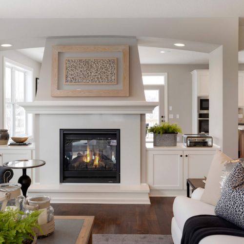 - Main level features 2-sided fireplace with optional built-ins between gathering and dining rooms