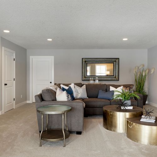 - Finished staircase to lower level with space for future family room, bedroom, bath, and storage space